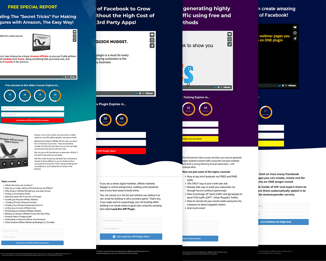 - 50 Squeeze Pages optimized with Video sales letters (VSLs)